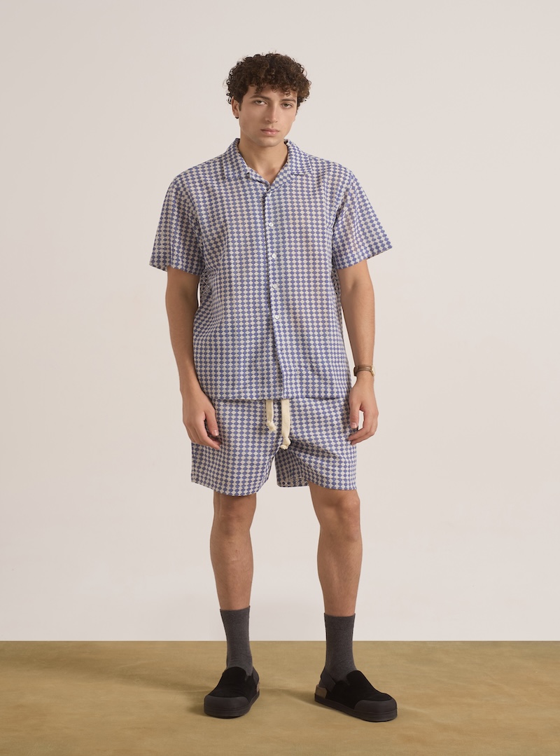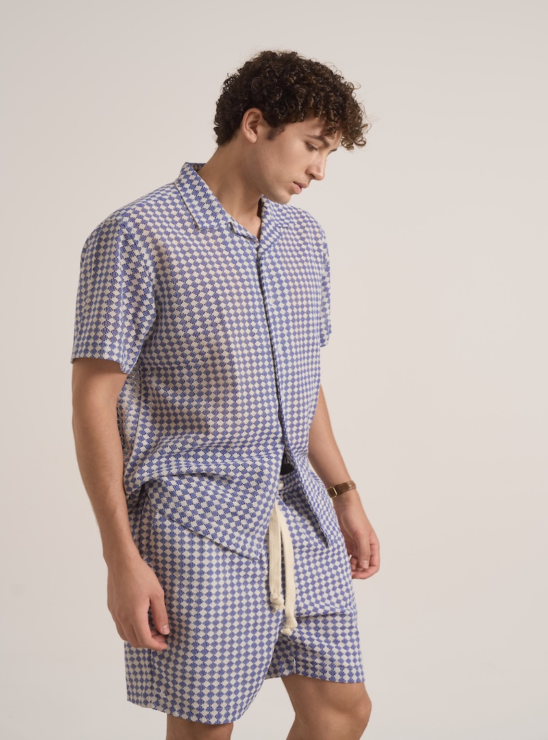 Introducing our Men’s Navy Blue Crochet Cotton Set, designed for both style and comfort. This set includes a short-sleeve button-up shirt and matching underlined shorts with two sides internal pockets, made from breathable cotton crochet fabric. The shirt features a relaxed fit with a classic collar, making it suitable for casual daywear or lounging. The matching shorts have an elastic waistband for a comfortable fit and provide a seamless look when worn together. Ideal for warm-weather outings or beachwear.